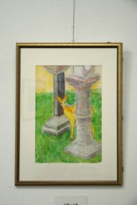 絵画同好会「波の会」は9月18日(木)から5日間、梅田の画廊「4匹の猫」で水彩画作品展を開きました。5人の会員が2作品づつ計10作品を飾りました。ギャラリーの正面ウインドウに1つ出したので、残りの9作品で恰好つくかと心配しましたが、これがピッタリ。少数精鋭(?)の展示になりました。