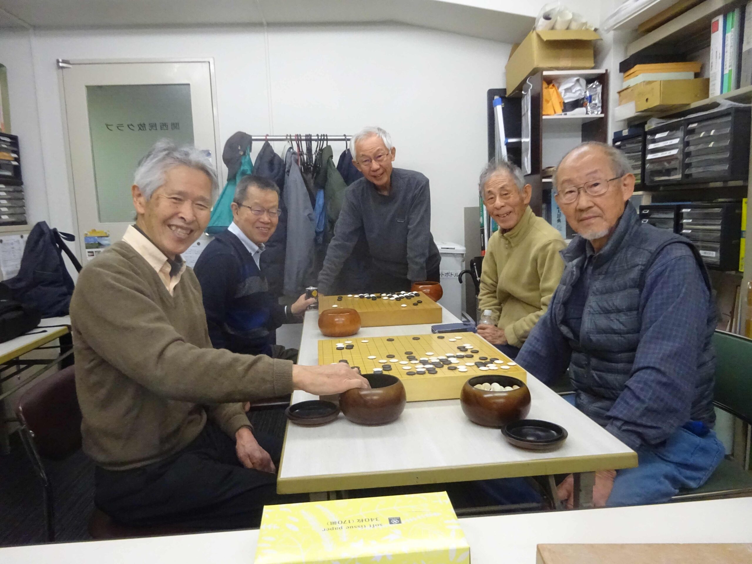 関西民放クラブ事務所が西天満に移転。囲碁同好会は今年初から新しい事務所で例会を実施。多少手狭ながら、窓から公園を望め明るい部屋で対局を楽しんでいます。12月22日には常連フルメンバー5人が揃って打ち納めをしました。